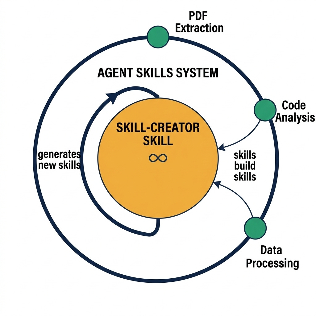 The composability is genuine: a skill-creator skill exists precisely to help users build new skills, encoding the pattern recursively within the system itself.